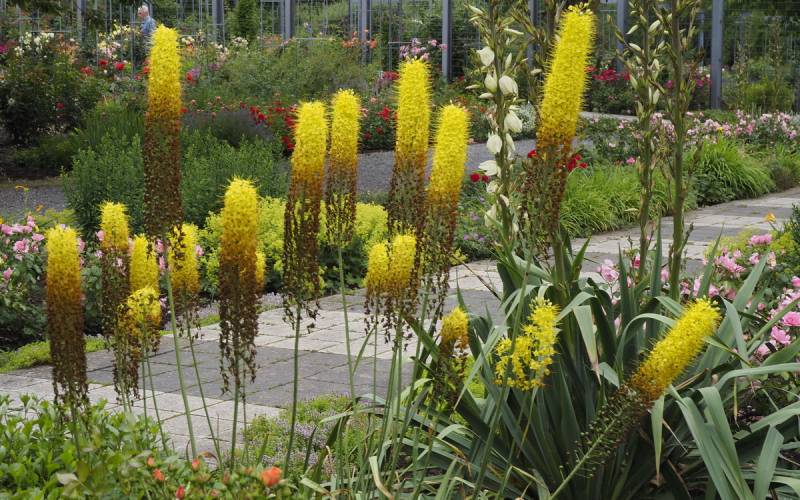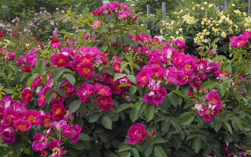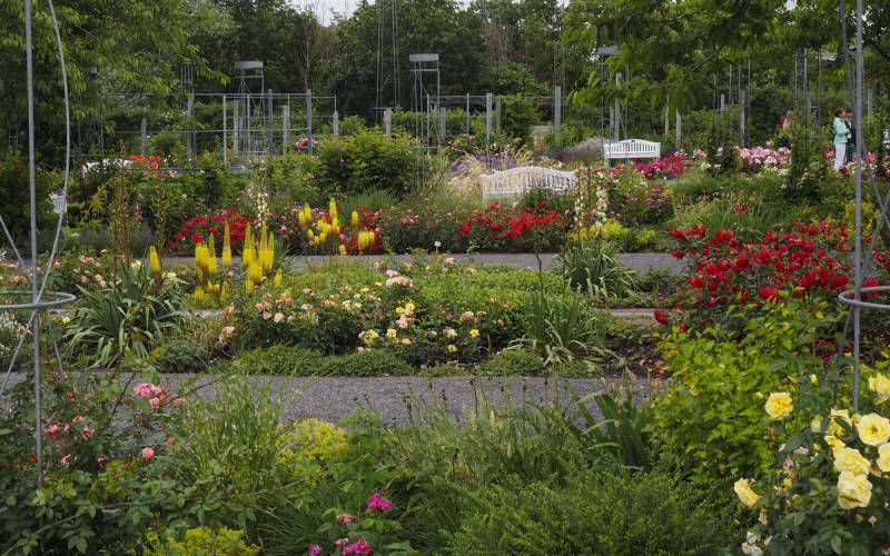 Duże wrażenie robi kolekcja 850 odmian róż pnących.