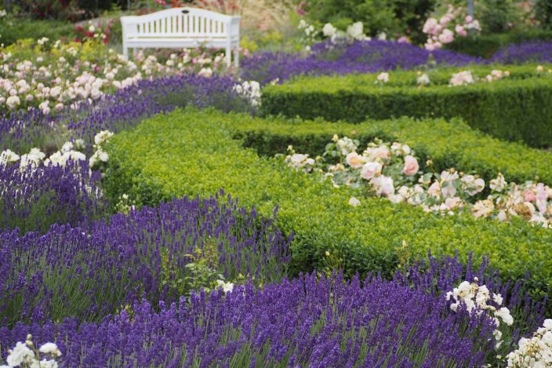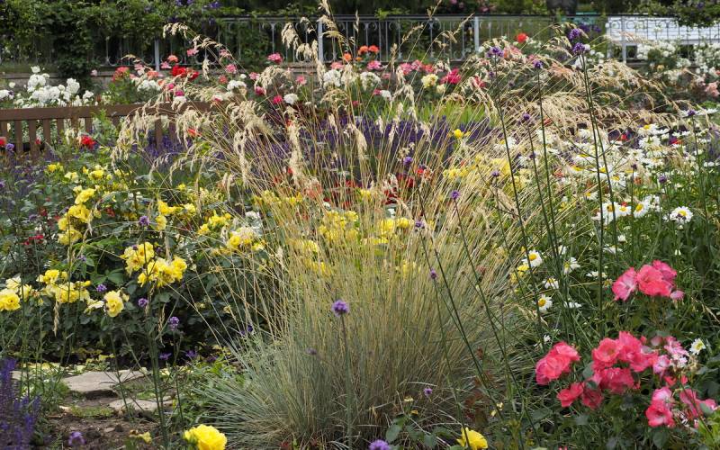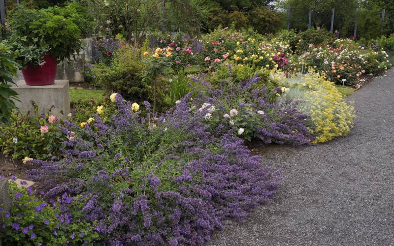 Całość jest przy tym misternie skomponowana w barwne kobierce, a w pełni sezonu różanego prezentuje się olśniewająco.