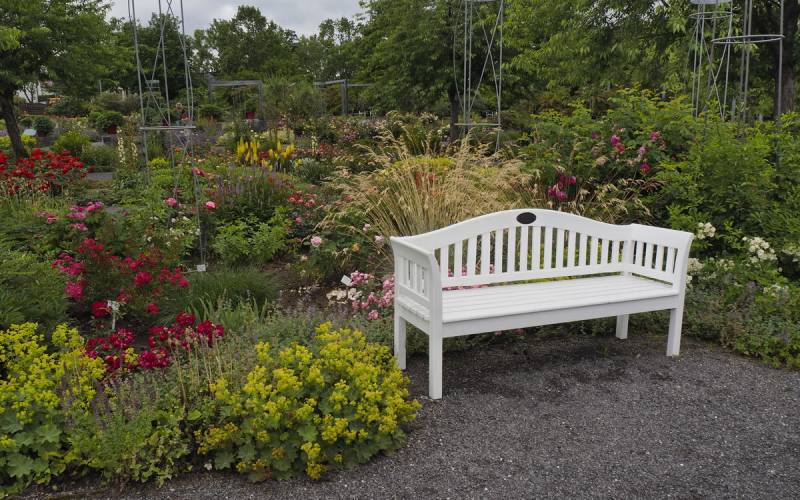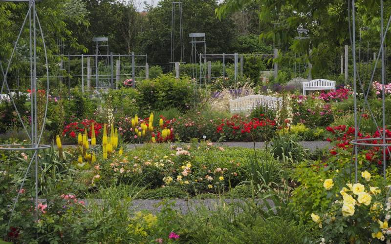 Oprócz historycznego różanego dziedzictwa w rosarium można podziwiać także współczesne odmiany, w tym te najnowsze wprowadzane do uprawy przez hodowców,