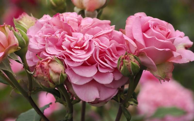 Idealne, półpełne, kremowo-różowe kwiaty na delikatnych pędach.