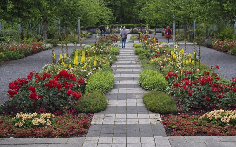 Kamienne ścieżki wśród kwiecistych rabat