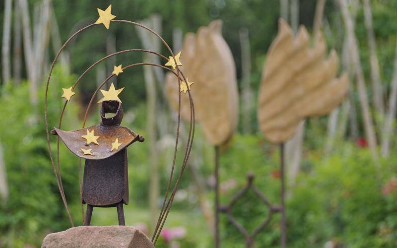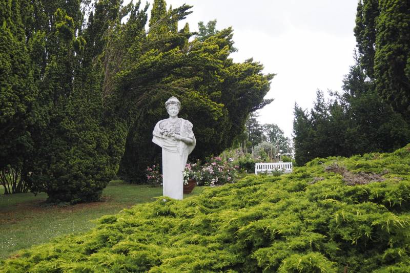 można tu znaleźć wiele urokliwych zakątków, a całości dopełniają rzeźby ogrodowe