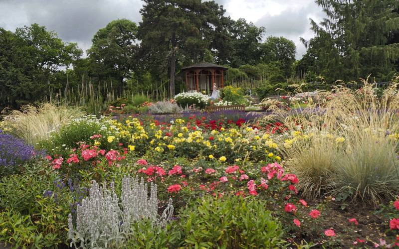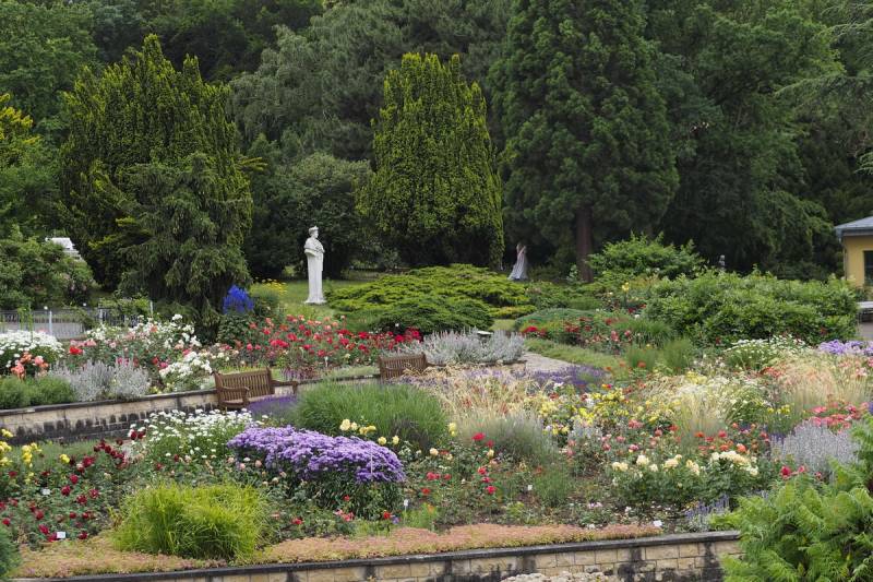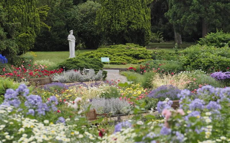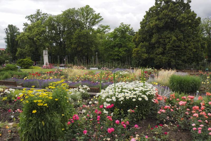 Rosarium to jednak nie tylko róże. W parku można podziwiać również około 250 rzadkich gatunków drzew i krzewów.