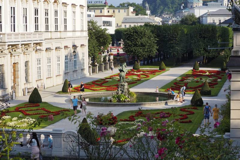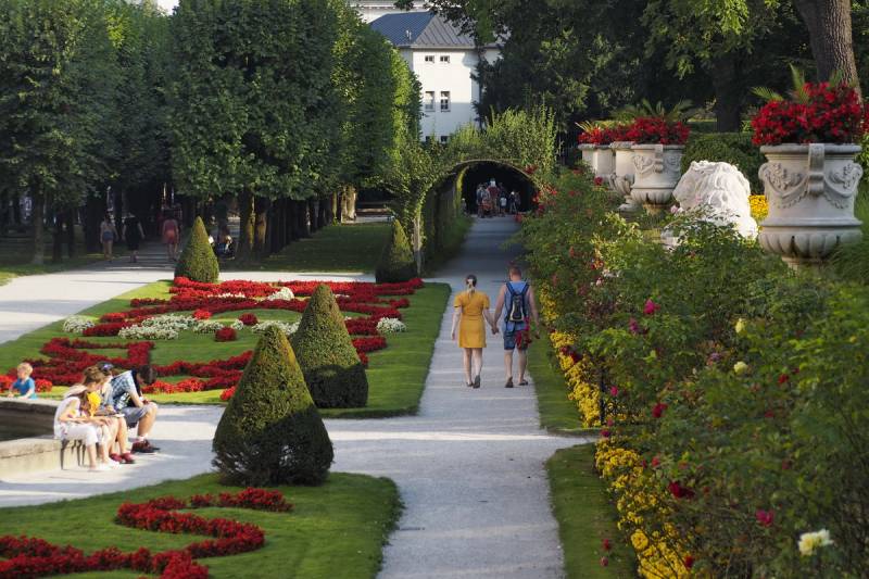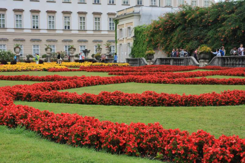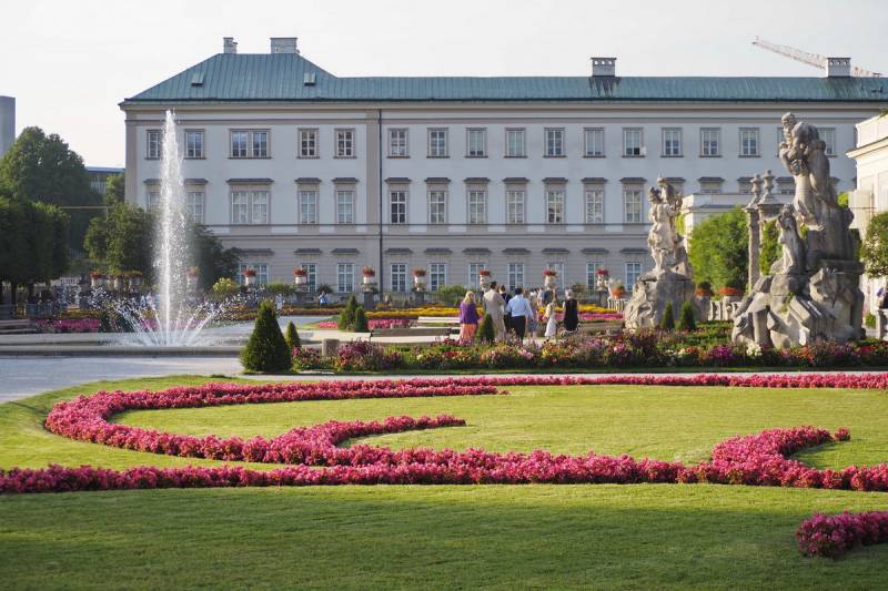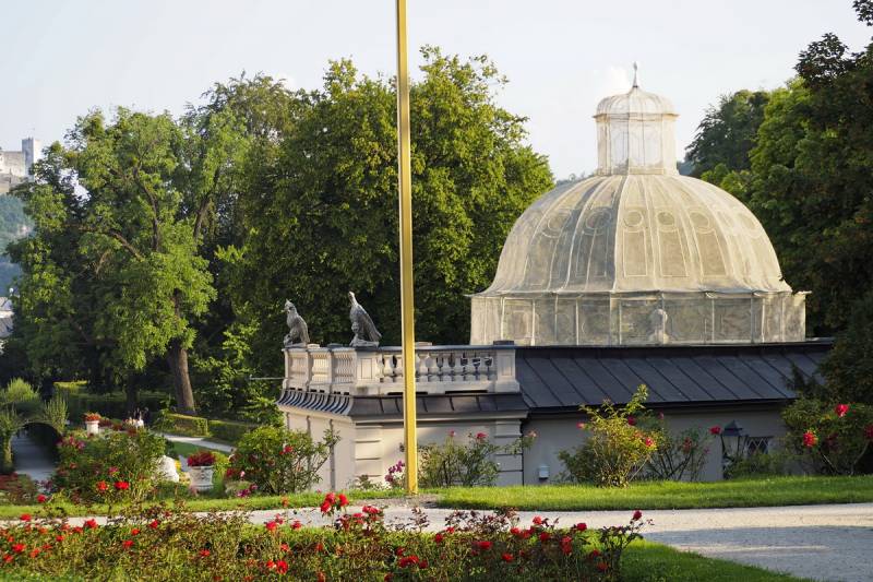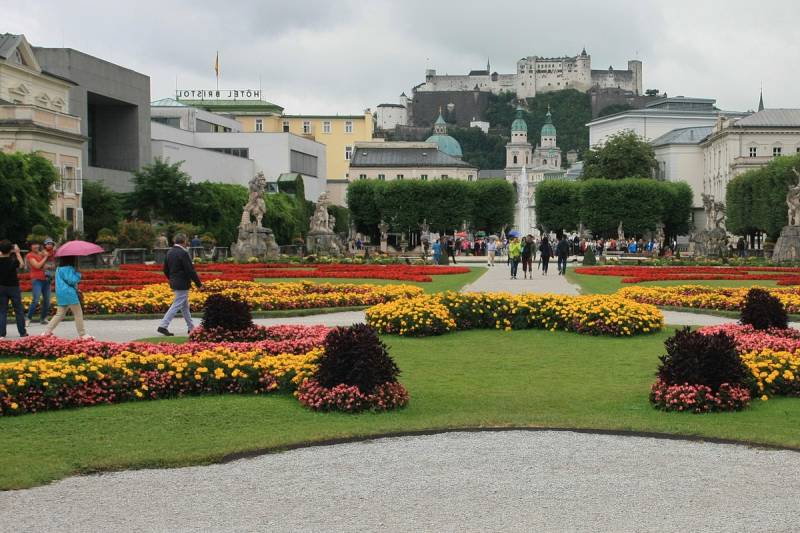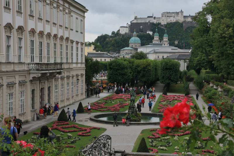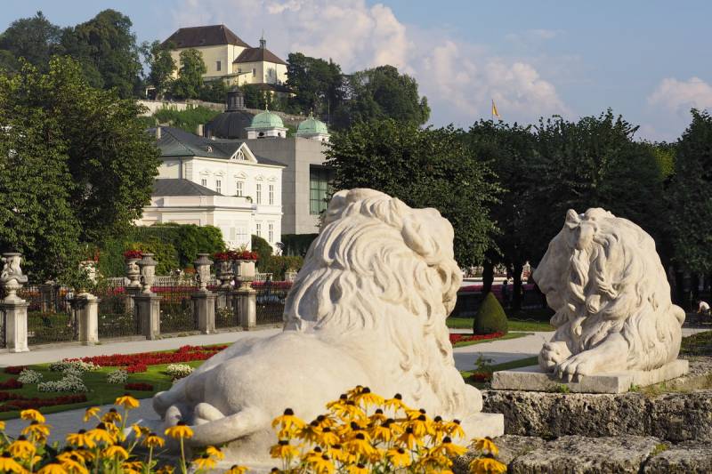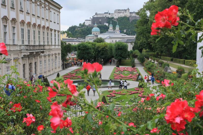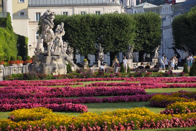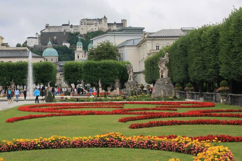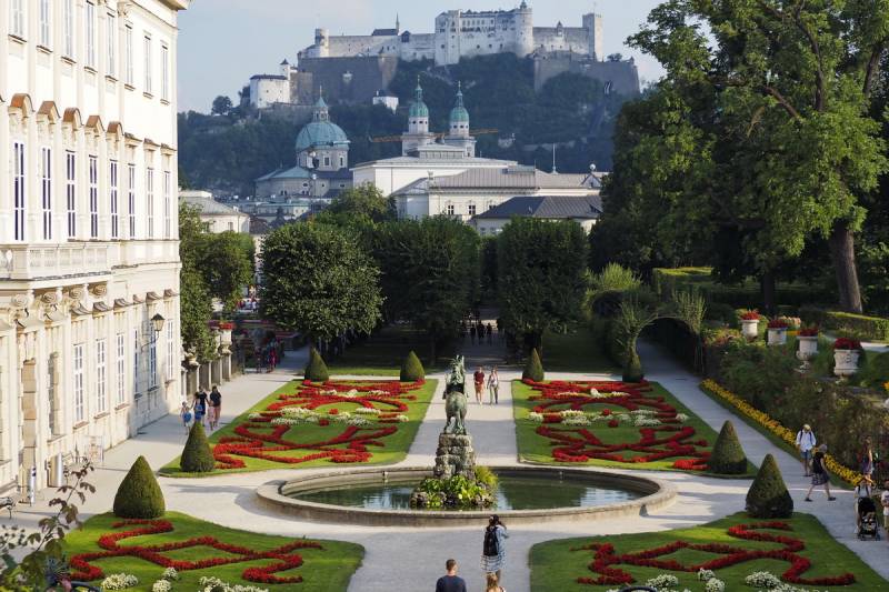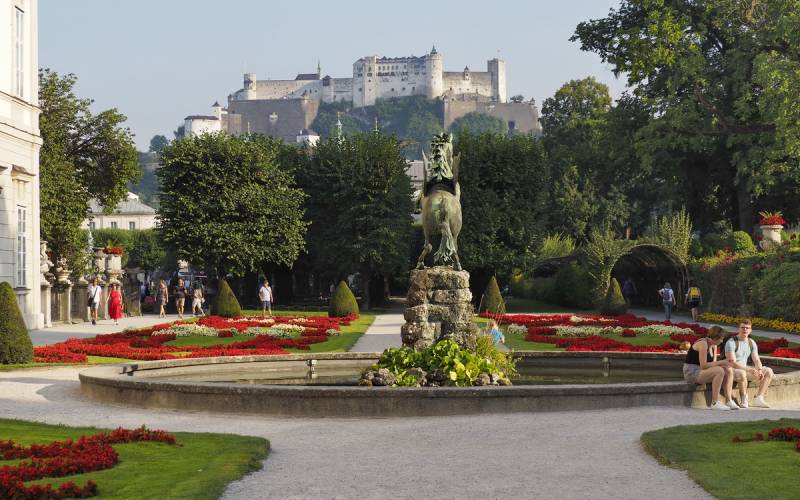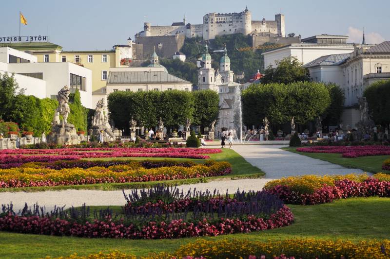 Oś widokowa ogrodów skierowana jest na barokową katedrę i średniowieczną twierdzę. To najpopularniejszy motyw fotograficzny w Salzburgu!