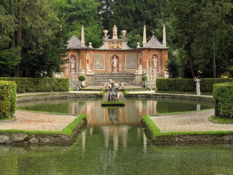 Na przedmieściach Salzburga znajduje się jeden z najsławniejszych ( jak twierdzą znawcy) ogrodów Europy:Hellbrunn.