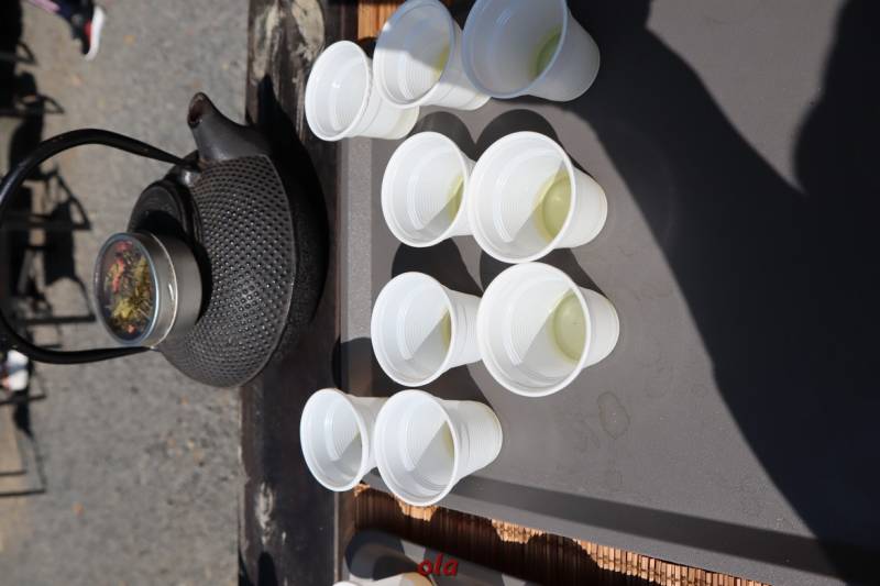Można było posmakować oryginalnej japońskiej zielonej herbaty , czystej jak i z dodatkami (np. wiśni , ryżu )