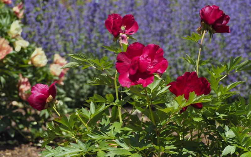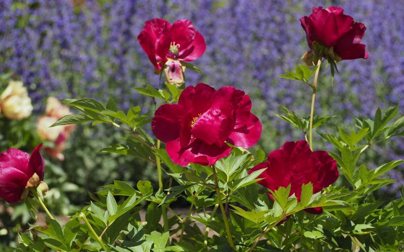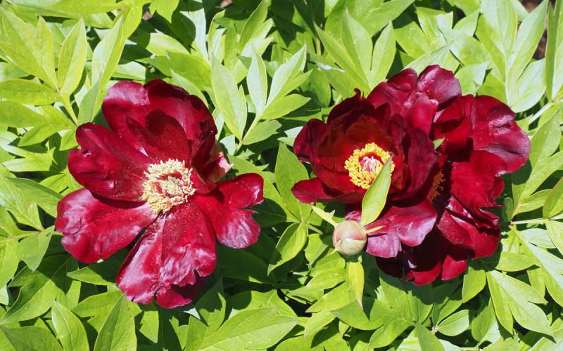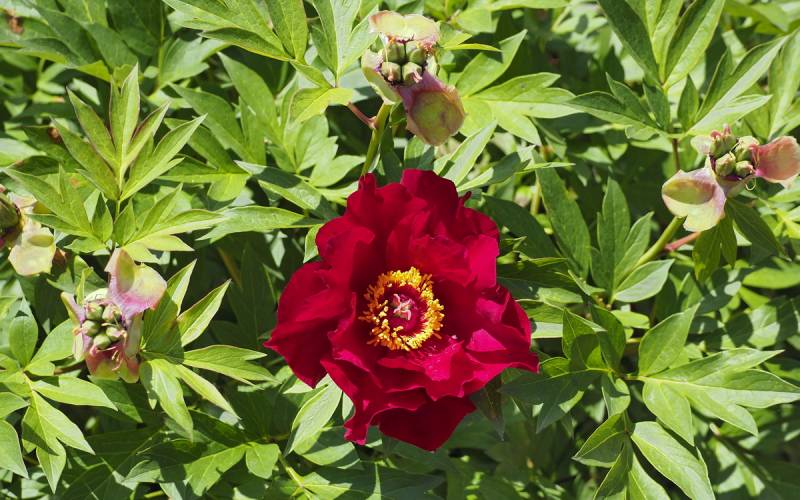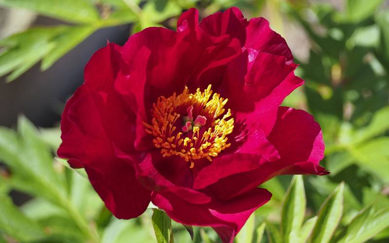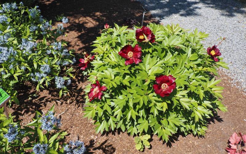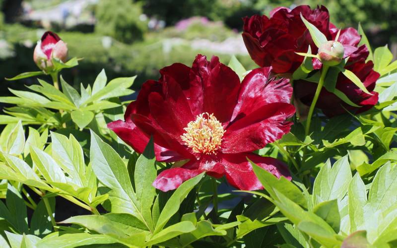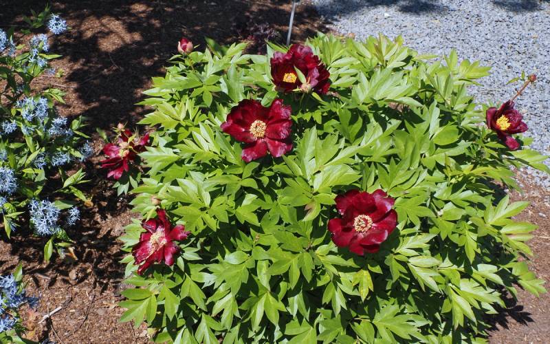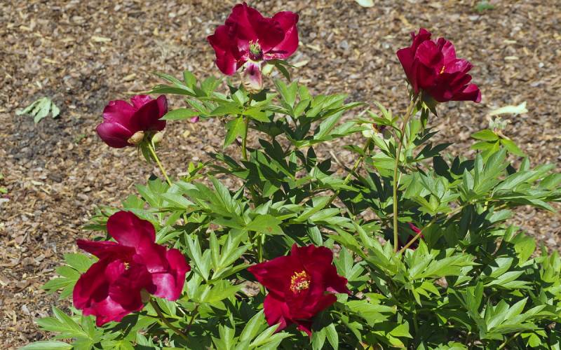 Hodowca: Irene Tolemeo, USA, 1999 Kwiaty: pojedyncze (Ø 15 cm) czerwone, w centrum ciemno-różowe z żółtymi pylnikami, kwiaty dobrze widoczne na krzaku Wysokość: 80-90 cm Pędy: mocne, sztywne Liście: jasnozielone, mocno wcięte Termin kwitnienia: koniec maja
