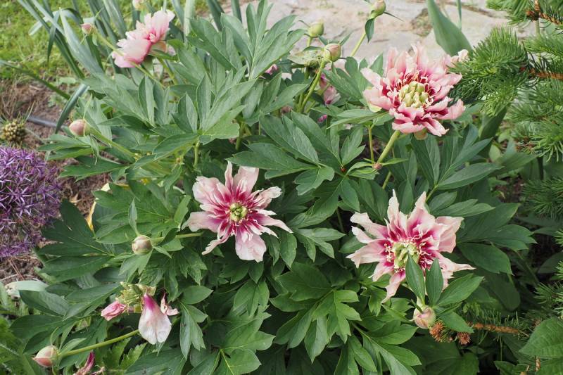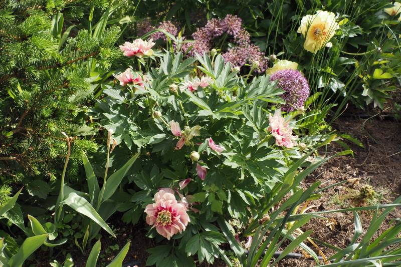 Ale jestem zachwycony ilością pąków kwiatowych, nawet po 3 boczne na łodydze. Żadna inna piwonia w pierwszym roku uprawy nie pokazała takiej ilości kwiatów