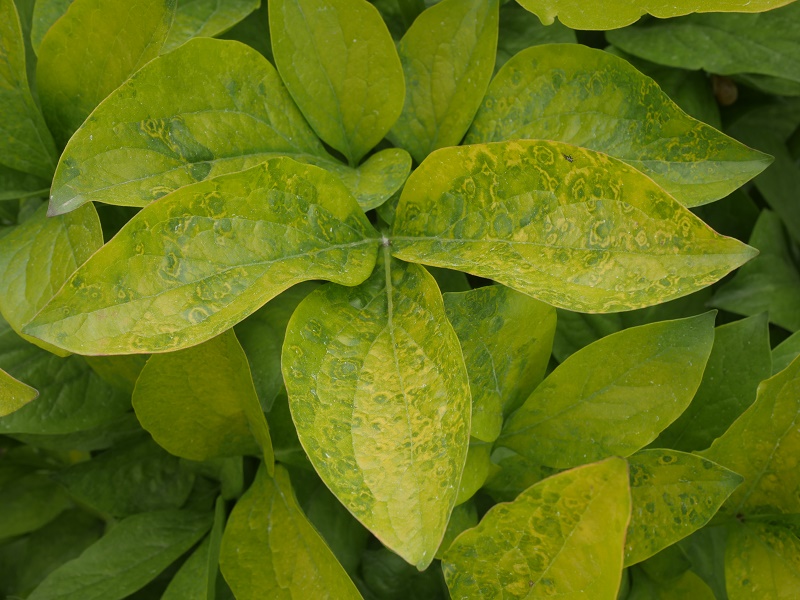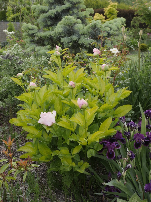 trochę mnie martwią te "wzorzyste" liście... taki jej urok czy jakiś wirus? Tylko ona jedna tak wygląda wśród moich kilkunastu piwonii ...