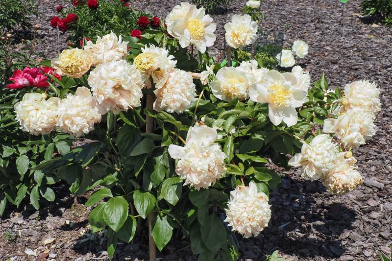 Pęd: mocne, ale wymagają podpór ponieważ jest to odmiana obficie kwitnąca o ciężkich kwiatach