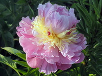 Hodowca: Don Hollingsworth, 1993 (USA) Kwiaty: pełne, dwukolorowe w odcieniach różu i żółci, duże (Ø 20 cm) żółte pręciki tworzą wyraźny kołnierz i powtarzają się w środku otwartego kwiatu Zapach: przyjemny ale raczej delikatny Wysokość: 90-100 cm, kwiaty wyraźnie wystają ponad liście Łodygai: mocne i długie ale będą się wyginać wraz z rozwojem ciężkich kwiatów, najlepiej stosować podpory Termin kwitnienia: późna, początek czerwca Nagrody: Award of Merit 1992, Best in Show Awards 2018
