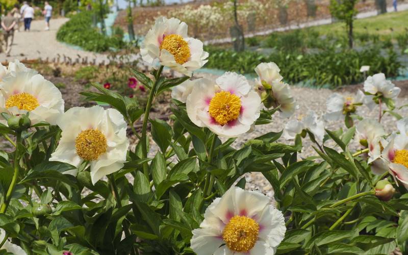 Poczwórna hybryda albiflory (inna nazwa piwonii chińskiej), lekarskiej, macrophylla i Mlokosewitschi (te dwie to piwonie dahurskie wielkolistna i Młokosiewicza)