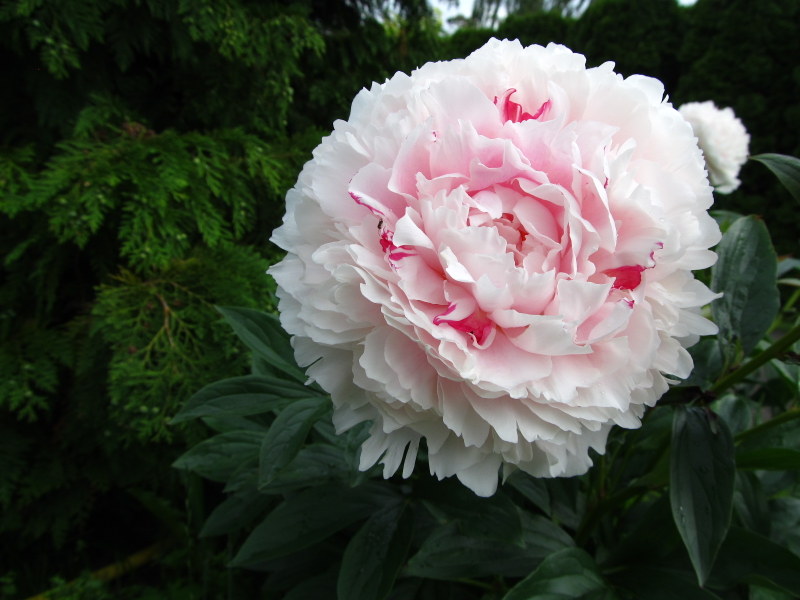 Wiesiu, obstawiam Festiva Maxima. Kwitnie dość wcześnie, wiotkie łodygi i różowe maźnięcie na płatkach ;).