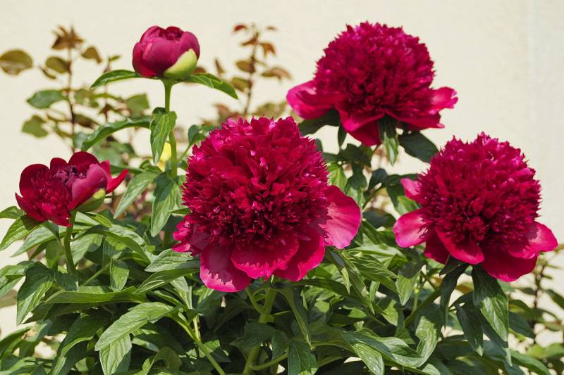 Kwiaty: typu anemonowego, pełne, koloru ciemnoczerwonego, średnicy ok. 20 cm