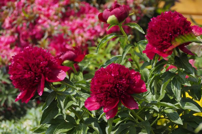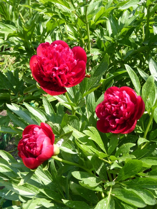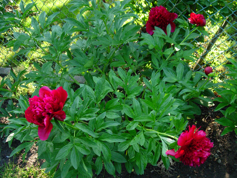 Na bordowej (czarnej) rabacie w Wojsławicach posadzono cały łan piwonii Red Charm ... wyglądało to genialnie, no i napstrykałem fotek :silly: