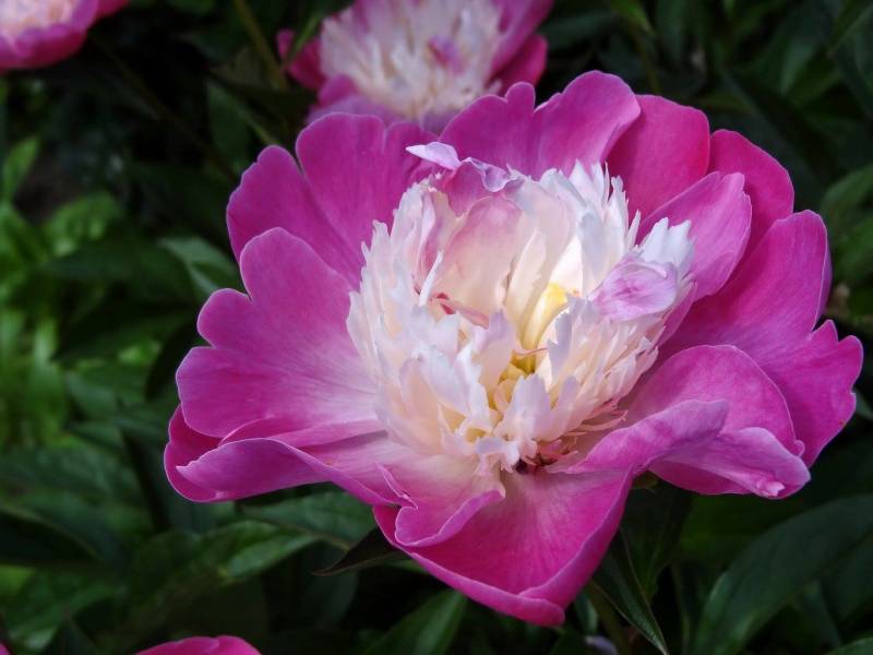 Piękne dwukolorowe kwiaty zaczynają kwitnienie w I dekadzie czerwca. Pachnie delikatnie.