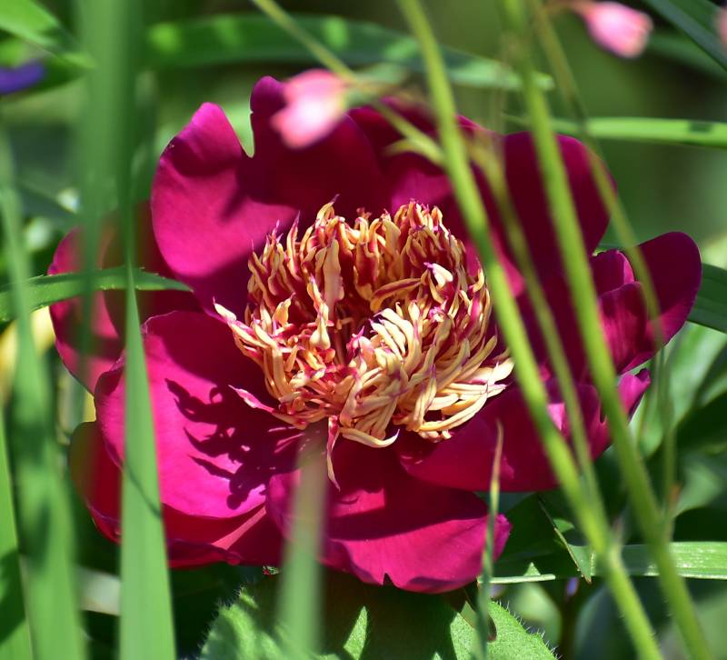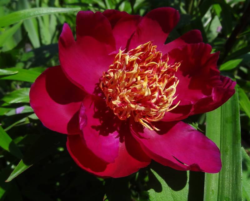 Odmiana o bardzo ciemnych, pojedynczych kwiatach. Złote pręciki dodaja jej niemałego uroku. Z czasem ciemnieją.