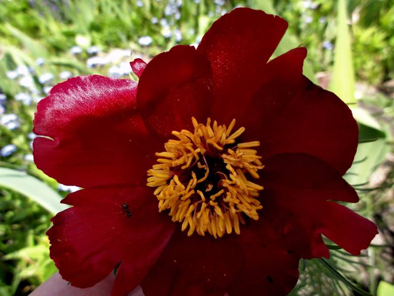 Po ostatnich, długotrwałych opadach deszczu Peonia delikatna (Paeonia tenuifolia) niestety rozłożyła się na łopatki :(