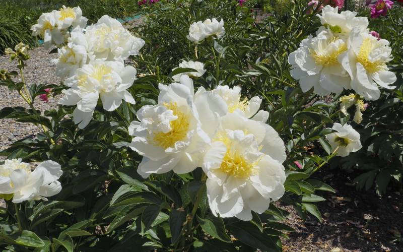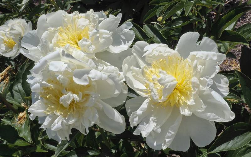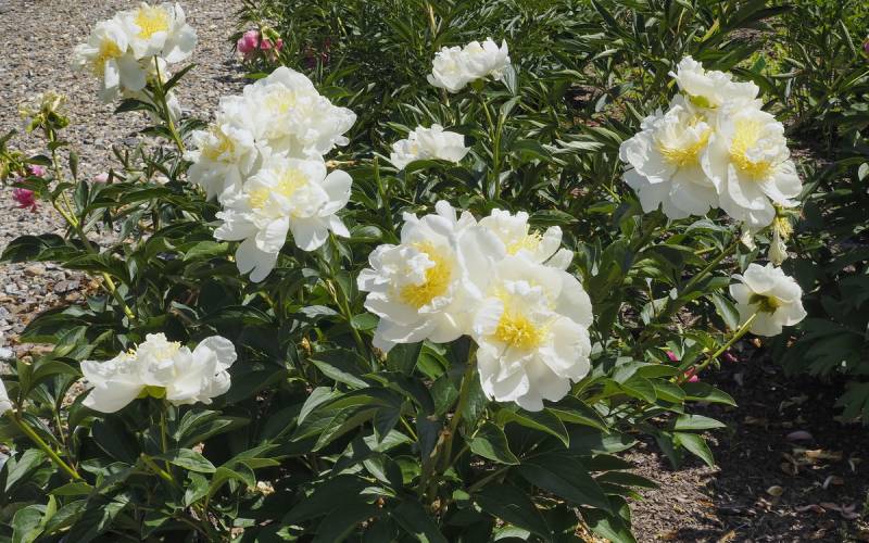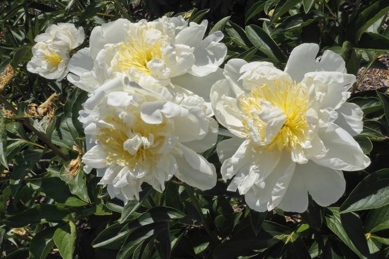 Hodowca: Carl G. Klehm (USA, 1959, wprowadzona do obrotu przez Roya G. Klehma 1979) Kwiaty: ok. 15 cm, pełne, płatki zewnętrzne białe, środkowe złoto-żółte Wysokość: ok. 80 cm, Liście: ciemnozielone Pęd: sztywny Termin kwitnienia: czerwiec Rodzice: Charlie’s White x Alice Harding