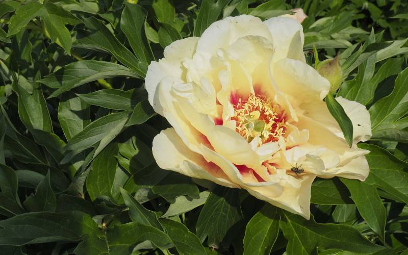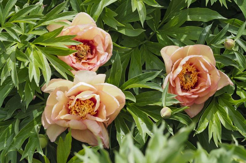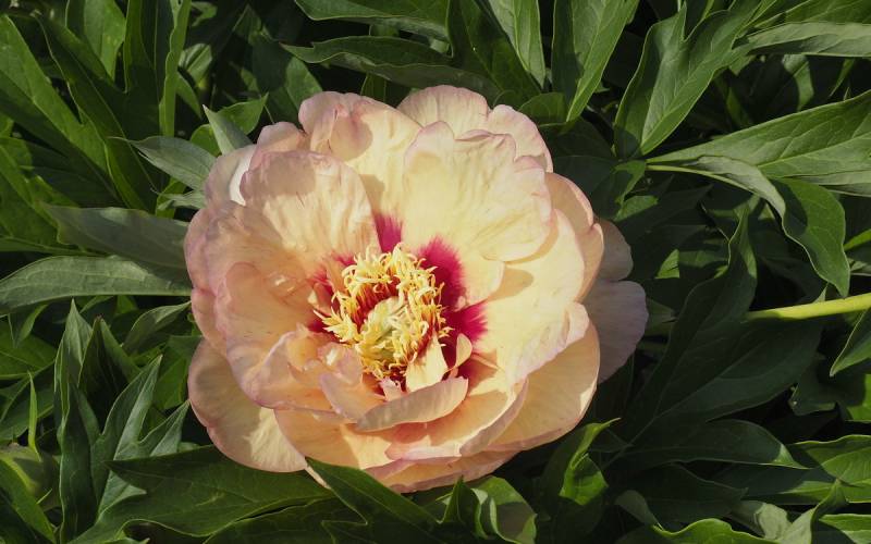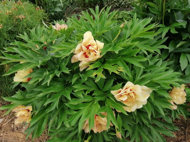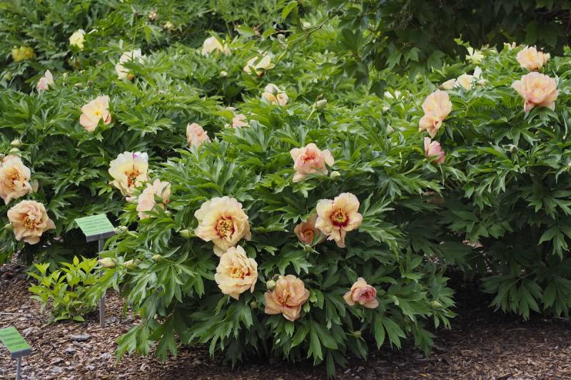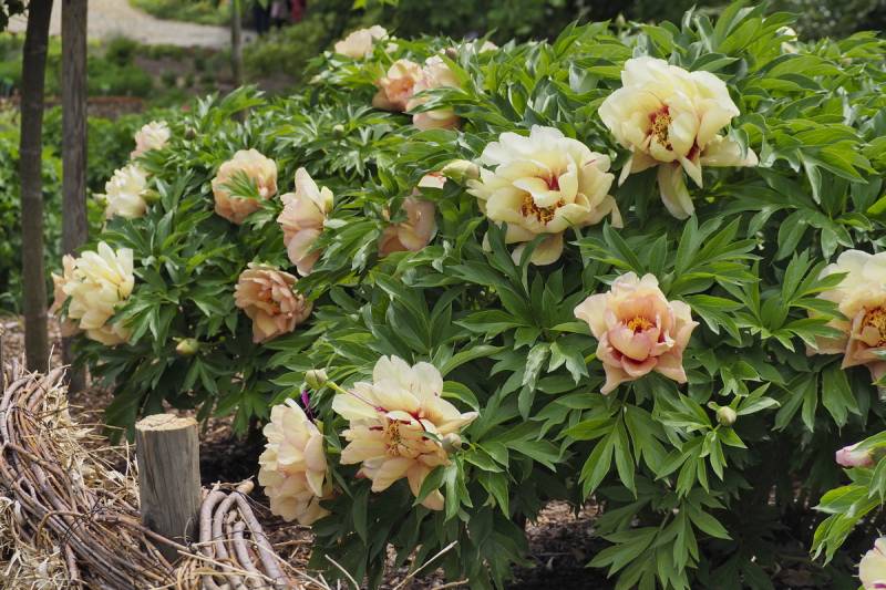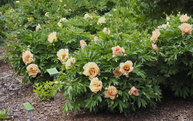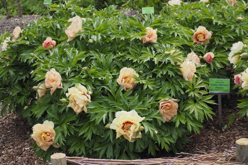 Hodowca: Roger F. Anderson, USA, 1986, (wprowadzona do obrotu 1990) Kwiaty: do 20 cm, półpełne. Kolor żółto-kremowo-bordowy (lub żółto kremowy z kasztanowatymi refleksami) Zapach delikatny, "słodki" Wysokość rośliny: do 90 cm. Liście: drobno podzielone zielone mają czerwonawe odcienie wiosną i jesienią Okres kwitnienia: średni ww. tekst Puszek