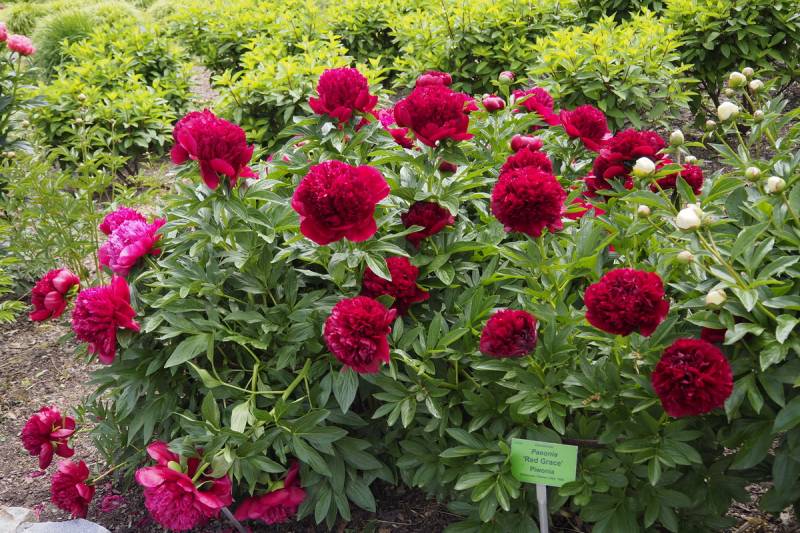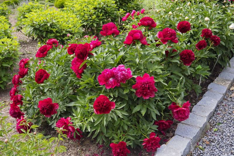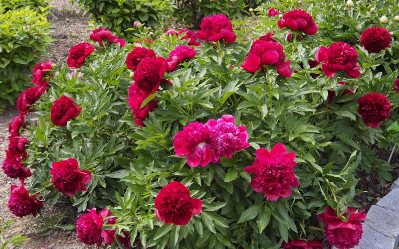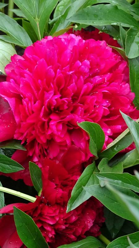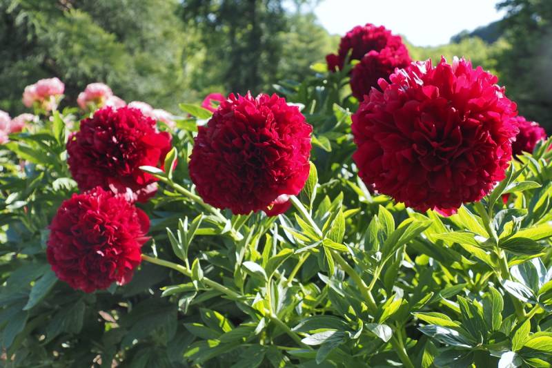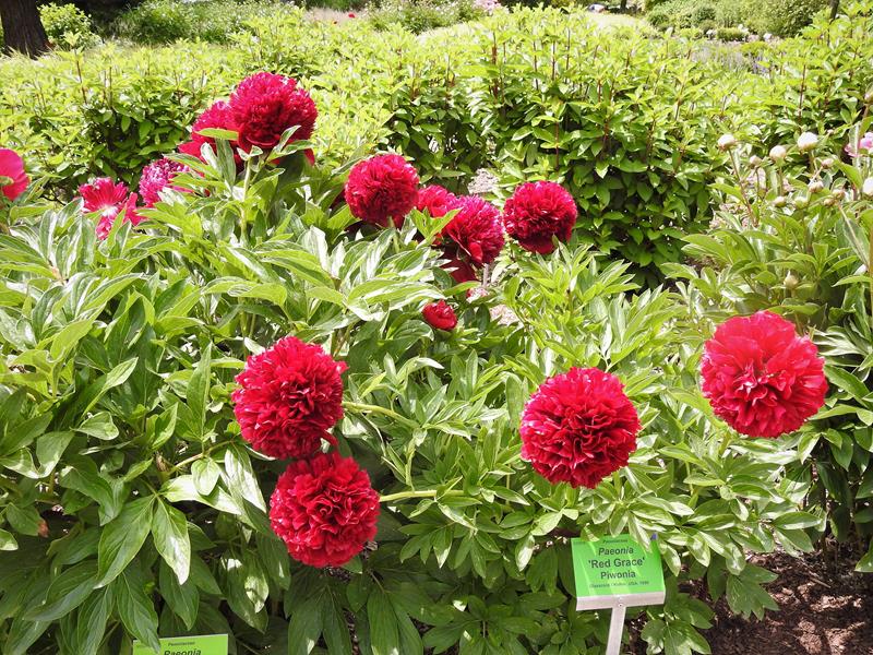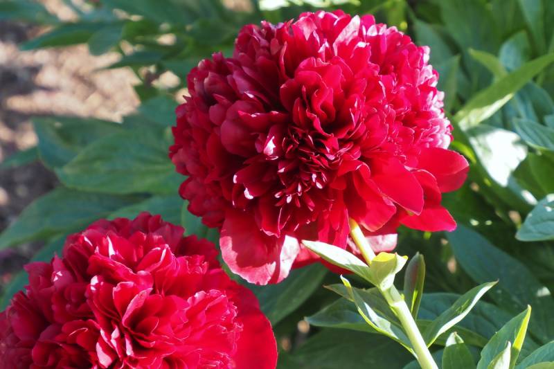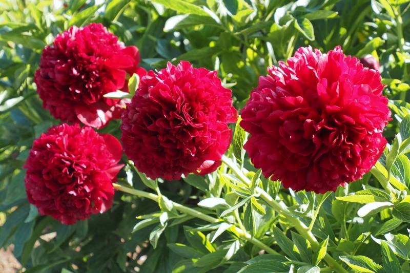 Kwiaty bardzo duże, pełne w pięknym czerwonym kolorze typu bomba.