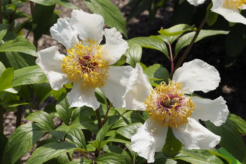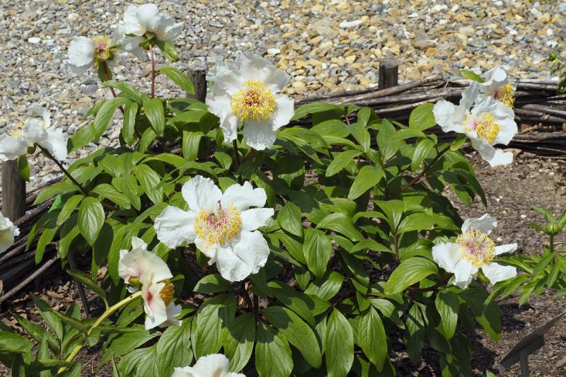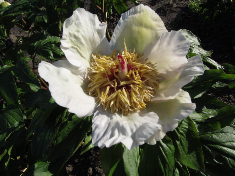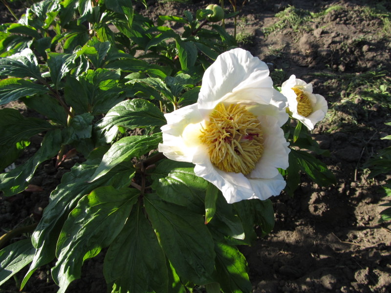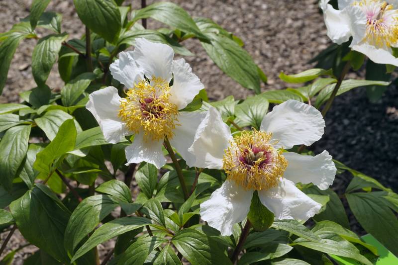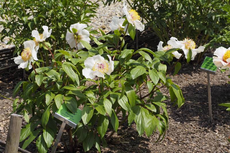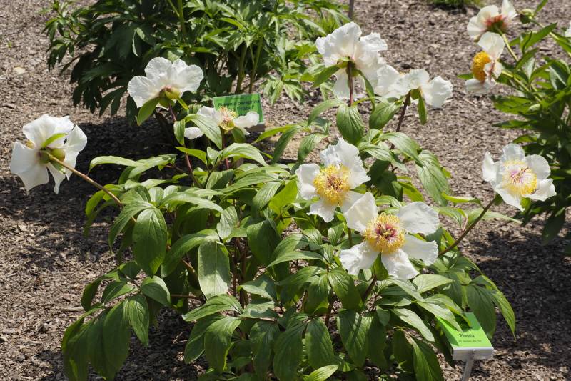 Hodowca: Saunders (USA, 1929) Kwiaty: do 25 cm, pojedyncze, pachnące, płatki kremowo białe (czasem o zabarwieniu lekko różowym), liczne pręciki złotożółte Wysokość: 90 cm. Liście: duże ciemnozielone podzielone na dziewięć listków Pęd: silny Termin kwitnienia: początek maja. Rodzice: lactiflora Primevere x macrophylla (chińska Primevere x wielkolistna)