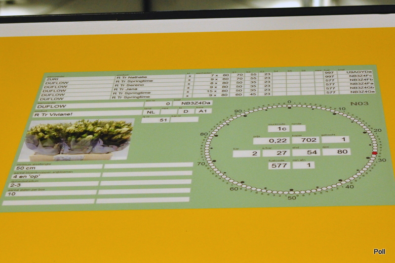 Oczywiście kwiaty musza byc odpowiedniej jakości, więc na terenie giełdy istnieje tez punkt kontroli jakosci. Próbki do kontroli pobierane sa wyrywkowo - po kilka sztuk z partii i oceniane przez fachowców. Za szyba widac partie ocenianych stroczyków