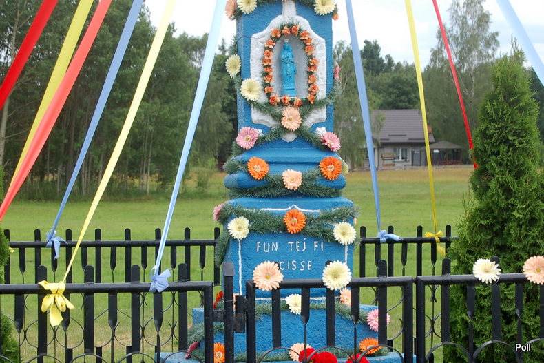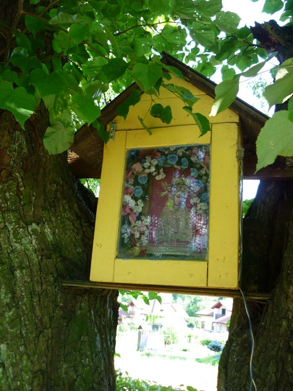 Najzwyklejsza, prosta, wiejska kapliczka maryjna. Odnowiona w ubiegłym roku. Przy niej odbywały się Nabożeństwa Majowe. Do tej pory w maju ubrana jest w kolorowe wstążki rozpięte gwieździście.