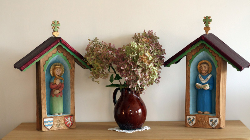 Kolejnych kapliczek nigdzie nie szukałam po świecie, a zamówiłam u artysty ludowego, rzeźbiarza pana Bronisława Suchego.