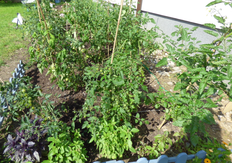 Dobra kondycja tych krzaczków to zdecydowanie zasługa daszku. Jednak suche liście to połowa (a może i więcej) sukcesu w uprawie pomidorów. Moje gruntowe pod gołym niebem dużo gorzej sobie poradziły i większość już w ostatnim czasie posprzątałam.