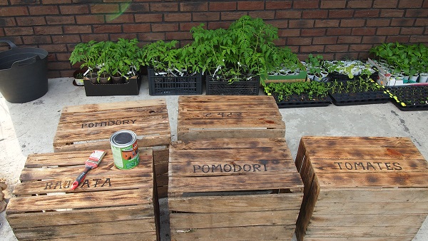 malujemy jakimś środkiem zabezpieczającym drewno (najlepiej wodnorozpuszczanym, skoro mają w niej rosnąć warzywa do jedzenia)