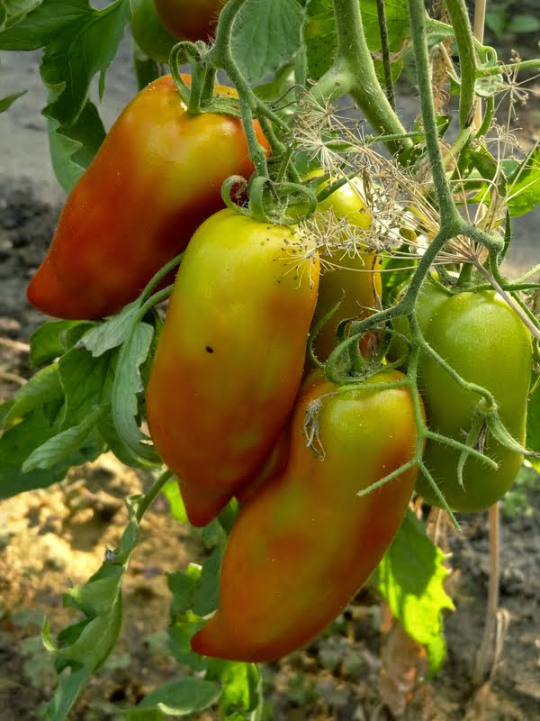 Świetne do sałatek i smażenia, bo nie mają w sobie dużo tej galarety z pestkami. Pomidory włoskie 'San Marzano'