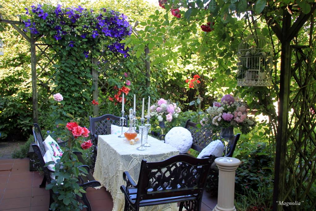 Koleżanka Daniela bloguje, a ja udzielam się w Social Media. Na Facebooku prowadzę Ogród w rytmie natury. Ale nie chcę tu pisać o sobie, ale o mojej koleżance Marzenie Białkowskiej która prowadzi Zaczarowany ogród Magnolii. Marzenka to niekwestionowana mistrzyni w budowaniu nastroju w domu i ogrodzie. Warto czerpać od niej inspiracje. Na zachętę kilka zdjęć z jej ogrodu. Na publikację otrzymałam zgodę właścicielki. :)