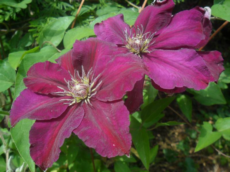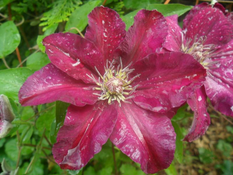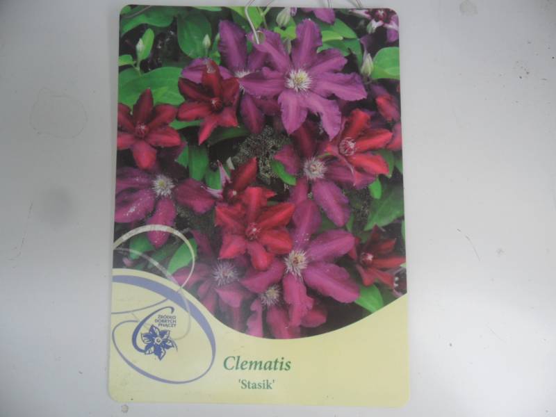 Hodowca: Maria F. Sharonova, Rosja (były ZSRR) 1972 Wielkość: dorasta do 1,5-2 m wysokości... pnie się po podporach za pomocą ogonków liściowych Kwiaty: purpurowo czerwone z jaśniejszym pasem biegnącym przez środek... o średnicy 8-10 cm... złożone z 6 działek... purpurowo czerwone pylniki osadzone na kremowych nitkach... kwitnie VI-VIII Stanowisko: słoneczne... gleba żyzna, przepuszczalna i wilgotna, o odczynie obojętnym lub lekko kwaśnym Cięcie: silne... wiosną na wysokości 30-50 cm od ziemi Mrozoodporność: strefa 4
