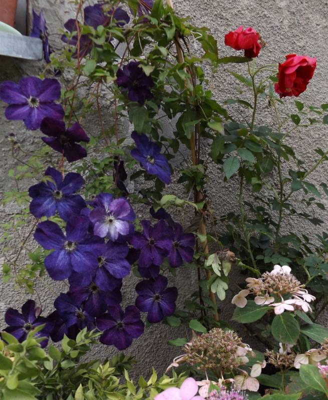 To bardzo ładny powojnik, ale u mnie coś się z nim dzieje. Mam go jakies 3-4 sezony i już kilka razy przymierzałam się do pozbycia go. Teoretycznie powinien być odporny, ale u mnie chyba zapada na uwiąd think: . Nie jestem pewna, ale mogłam posadzić go w miejscu, gdzie wcześniej rósł chorujący wielkokwiatowy think: . No, w każdym razie, co roku zakwita, po czym pędy czarnieją i zamiera. Już go nawet raz przesadziłam, ale chyba niewiele to dało. Daję mi ostatnią szansę w nadchodzącym sezonie teacher .