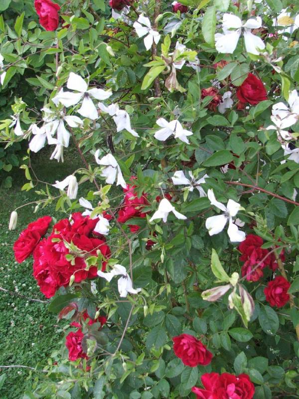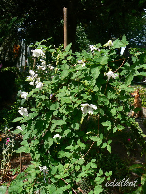 To mój najstarszy powojnik, rósł pod starym domem w bardzo zacisznym i suchym miejscu, pewnie dlatego każdego roku dopadały go grzyby i przędziorki. Wykopałam go i regenerował się w donicy, teraz muszę wyszukać mu odpowiednie stanowisko.