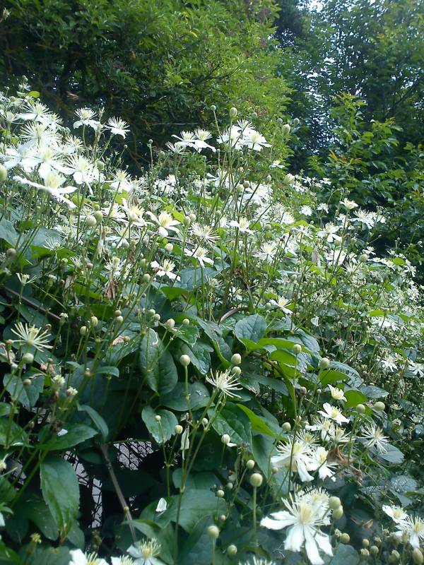 Nie chcę tu nikogo załamywać ale mój Paul Farges rośnie w słońcu i nie pachnie, w każdym razie ani ja, ani żaden z wąchaczy nic nie wyczuwa B) Ja się nawet wbiłam w ogródek naszej pani wiejsko-sklepowej, która onego ma i, niestety, też nic. Się obawiam, że ten zapach to chwyt marketingowy :mur Jakby nie było, z wonią czy bez, jest to wielce potężny powojnik, zdrowy jak byk i piękny jak przyobiecany w nazwie handlowej "Summer snow" :) Mój rośnie obok drugiego potwora, tanguckiego, razem trzymają w kupie resztki woliery po papugach i, uwaga! Paul Farges zaczyna wygrywać 43pomoc