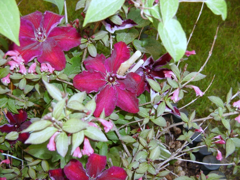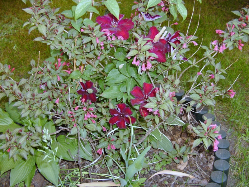 marceli52 świetne połączenie tego powojnika z krzewuszką :bravo , choć zdjęcie z fleszem to i tak widać urok tego połaczenia, bardzo mi się podoba, zapamiętam teacher