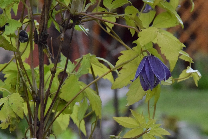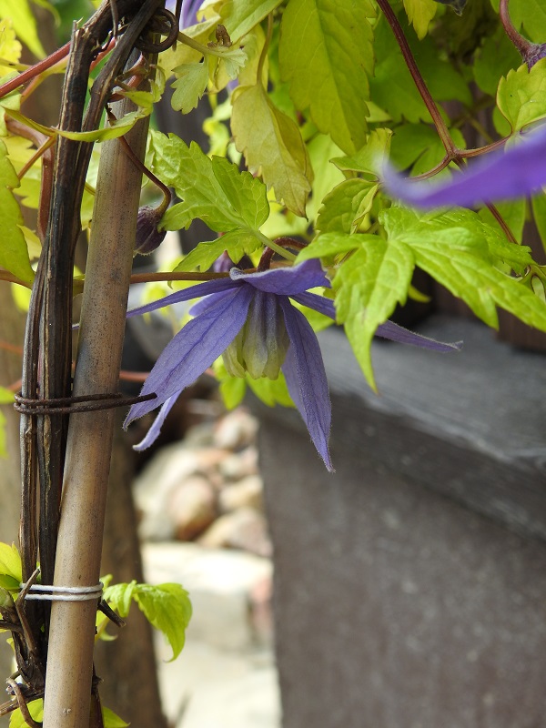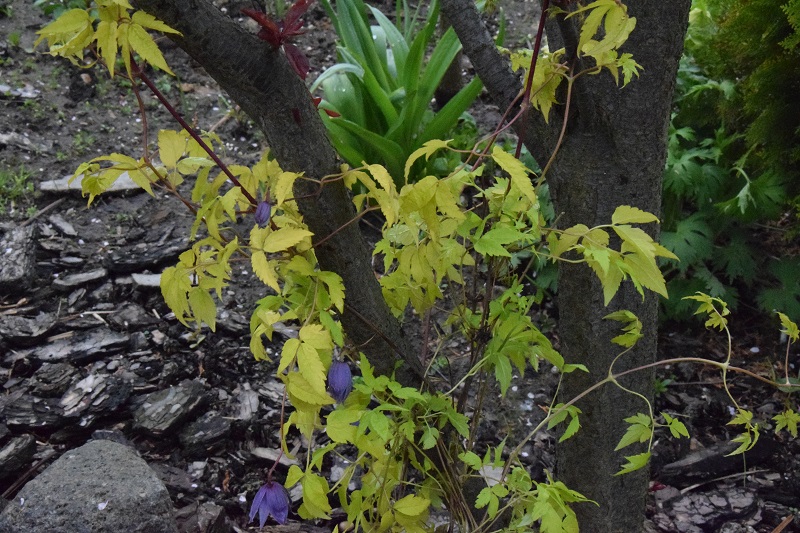Koleżanka, bardzo sobie chwaliła ten powojnik, dlatego i ja postanowiłam zaprosić go do swojego ogrodu. Posadziłam przy czerwonolistnej wiśni, żeby uzyskać kontrast barwny. Przyjechał z pączkami kwiatowymi na początku maja i szybko je otworzył: