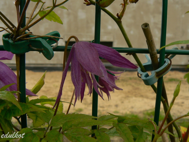 Później niby rósł, niby usychał ale w gąszczu różanym niewiele go było widać, po przycięciu róż ukazał się kwiatuszek, słaby i wyblaknięty, jakbym go widziała wcześniej to pewnie urwałabym ten pączek bo po co miał się wysilać bo ciągle słaby ten powojnik B)