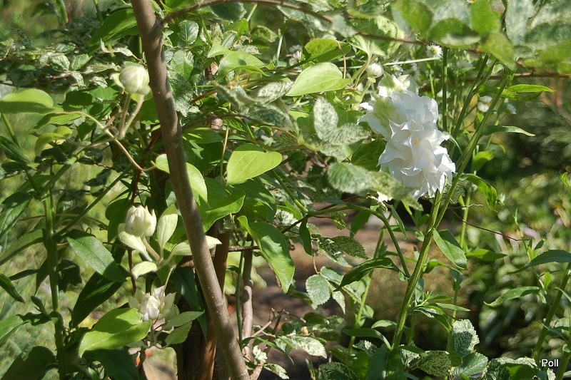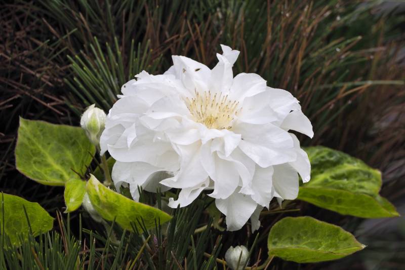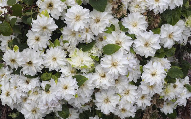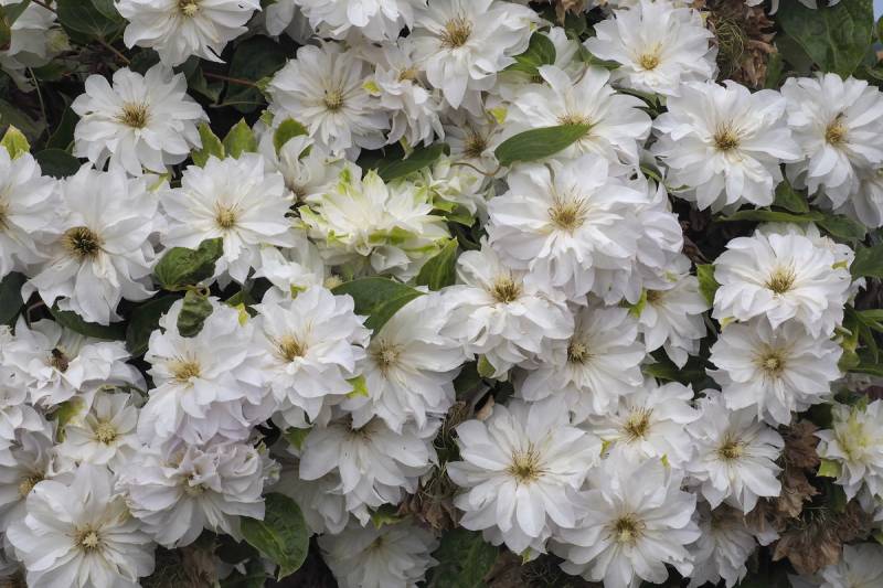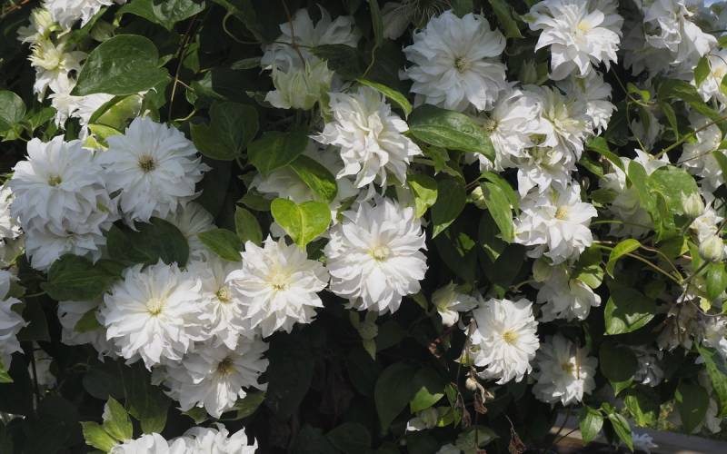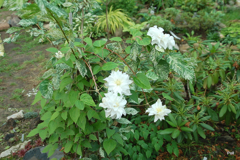 Kwiaty: pełne, białe o średnicy 12-15 cm; czasem z zielonymi przebarwieniami