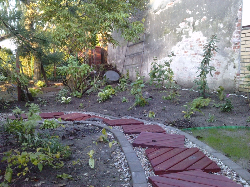 Całość rabaty ma kształt bardzo nieregularny, a to spowodowane jest zamysłem utworzenia nieco oddzielonych od siebie i połączonych krętą ścieżką fragmentów ogrodu, który dzięki temu robi wrażenie większego niż jest