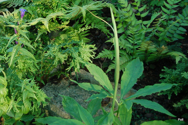 Ciekawe i oryginalne jest zakończenie kolby. To bardzo długi,gładki wyrostek,wystający z pochwy daleko poza roślinę. Dojrzałe rośliny w dobrych warunkach mogą osiągnąć nawet