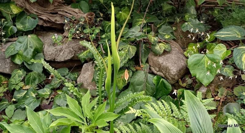 To był kamyczek do mojego ogródka, więc raportuję- Pinellia x cortita 'Purple Dragon' ładnie wystartowała, obficiej, niż w ubiegłym sezonie. ma kilka kwiatów, więc szkoda, że nie zawiązuje nasion.