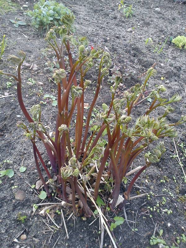 Actaea pachypoda (alba) bedzie miała białe owocniki. Teraz właśnie zaczęła pojawiać się nad ziemią.