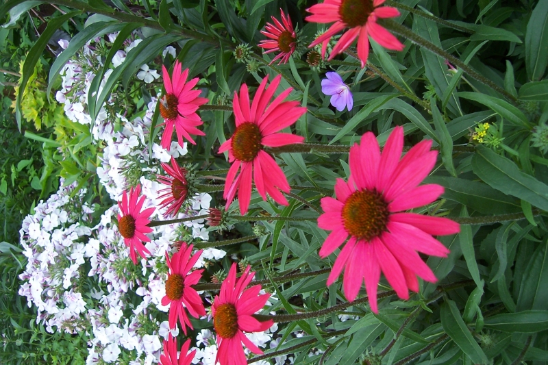 Ja zaczęłam jakieś 2 lata temu zbierać odmiany jeżówek ale na razie nie są jeszcze bardzo pokaźne, chociaż (tfu, tfu) nie mogę narzekać. Wypadła mi do tej pory tylko 1 - butter cream :placz ale to z mojej winy (przesadzałam wczesną wiosną maleńką sadzonkę i tego nie przeżyła). Te zwykłe białe i różowe sieją się gdzie popadnie i na razie mają na to u mnie zielone światło. Mam nadzieję, że tak jak do tej pory zima ani choroby grzybowe nie będą zbierać żniwa jeżówkowego.