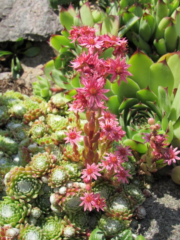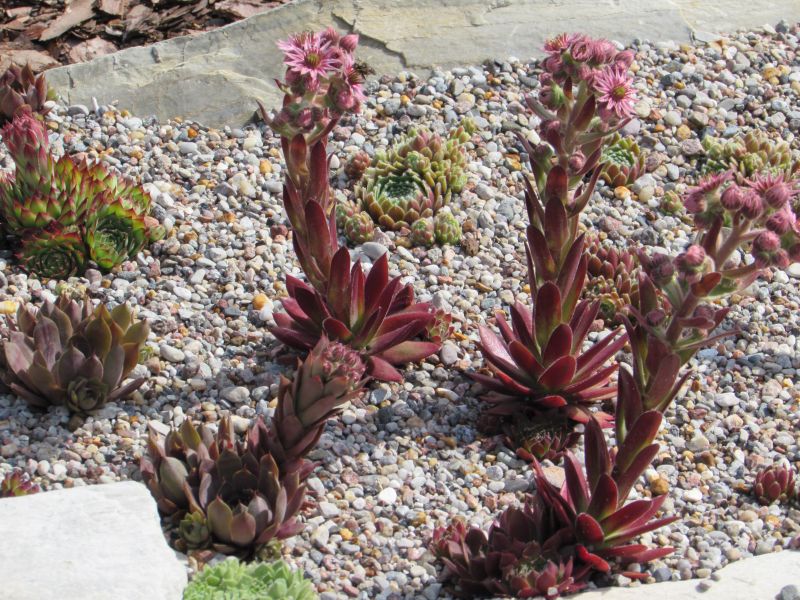 Rojniki, to najmniej wymagające rośliny w moim ogrodzie. Rosną w pełnym słońcu, na mocno nagrzanych kamieniach. Właściwie nie mają kontaktu z podłożem, bo zostały kilka lat temu powciskane pomiędzy kamienie. ;)