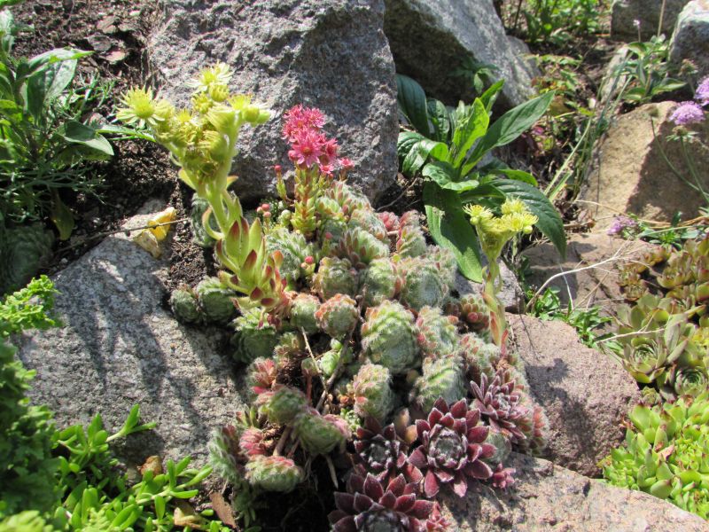 NN- bardzo żywotne, produkują dużo młodych odrostów, które staram się utykać w różnych miejscach. Co roku część rozetek kwitnie, po czym zamiera, zostawiając miejsce dla młodych