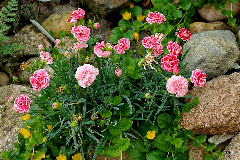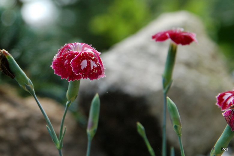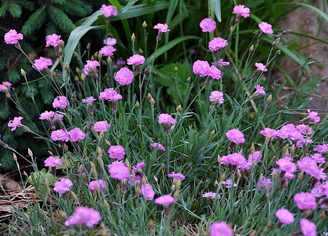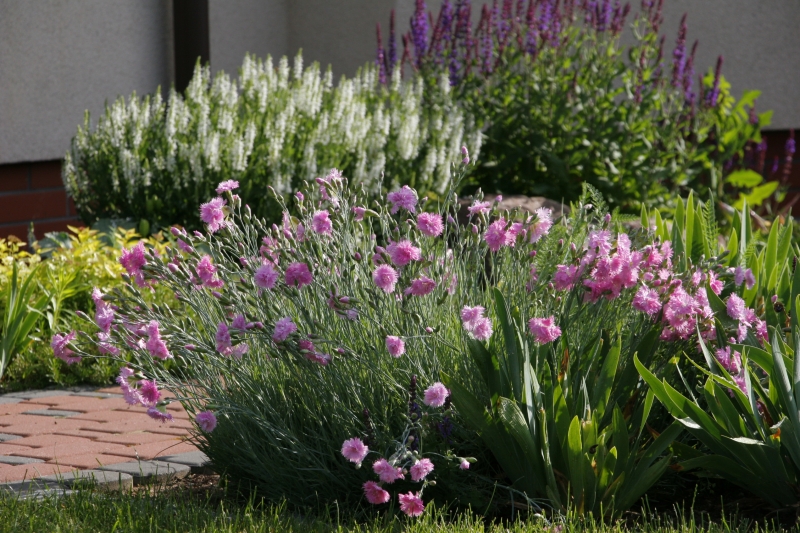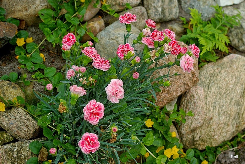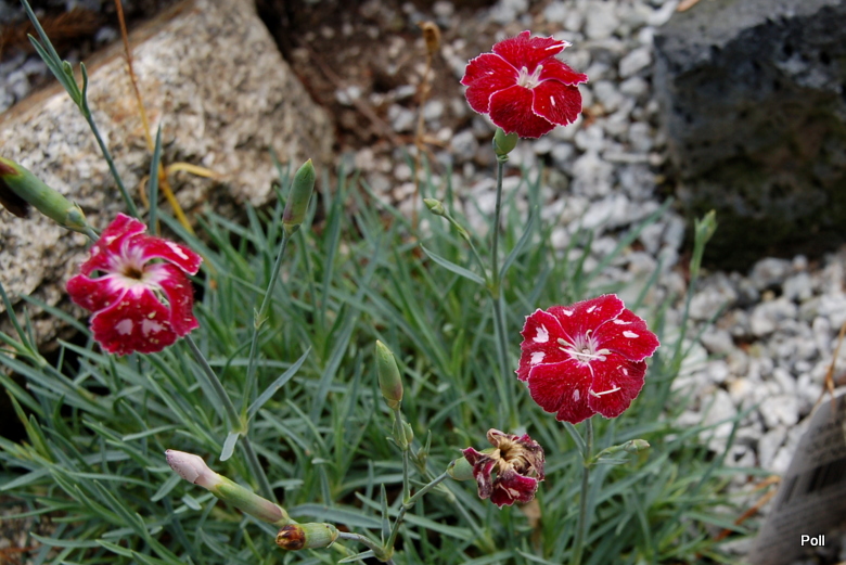 Goździk Queen of Henri rośnie u mnie na specjalnym wzniesieniu, zbudowanym na bazie gruzu budowlanego. Swoją piaszczystą ziemię wzbogaciłam kupną ziemią humusową, oraz perlitem i żwirem. Całość wysypana jest żwirkiem ... nie dla ozdoby a dla zdystansowania rośliny od gleby.