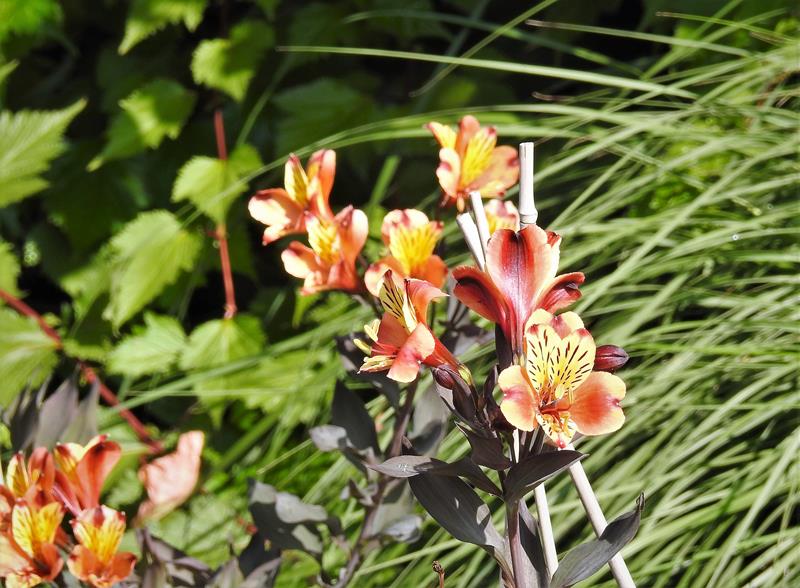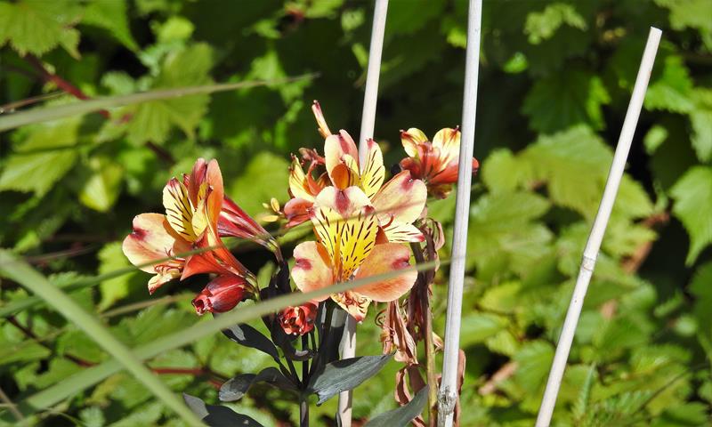 Ładna, choć mało widoczna wśród traw alstremeria rosnąca w OB w Wojsławicach. Kwiaty musiały się pokładać, bo podparte zostały patyczkami. Niezbyt dekoracyjnie to wyglądało ... oczywiście, jak na mój gust ;)